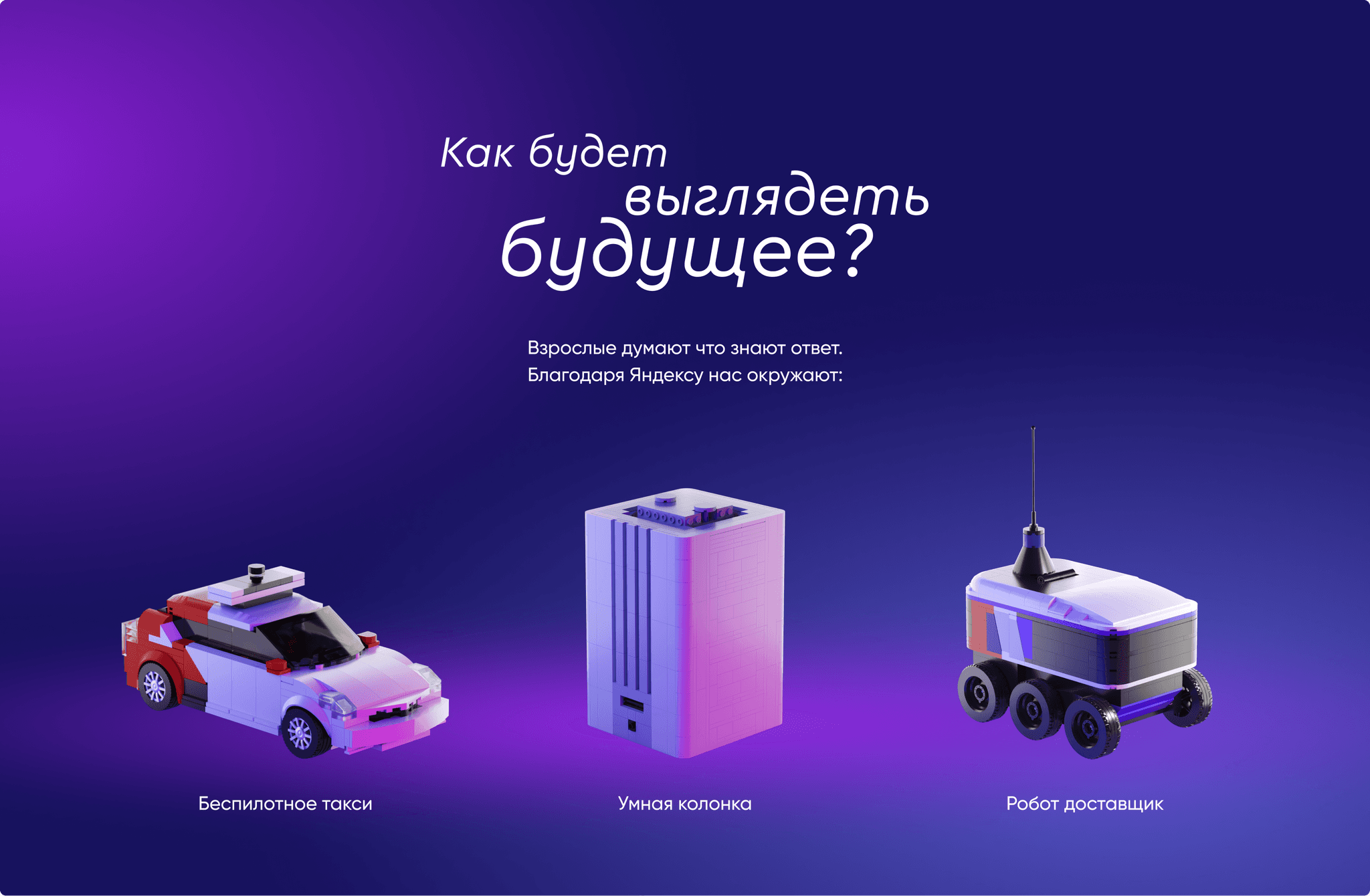 Проект развивает концепцию Rebuild the World и выводит её на новый уровень, интегрируя LEGO с экосистемой Яндекс, создавая уникальные возможности для творчества и взаимодействия.